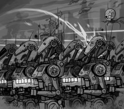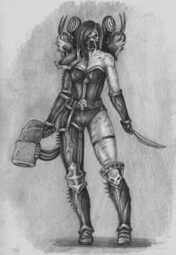 Though powerful such Aether-Golem constructs are used sparingly by Fra'al pirates and raiders, instead using them to strengthen already captured beachheads on enemy vessels. Occasionally fielded en mass as heavy support when multiple Fra'al Conclaves harmonise into a mutually beneficial Sistrum Battlegroup, assaulting terrestrial targets for sustained resupply occupation and using enslaved larbour for fleet repair.